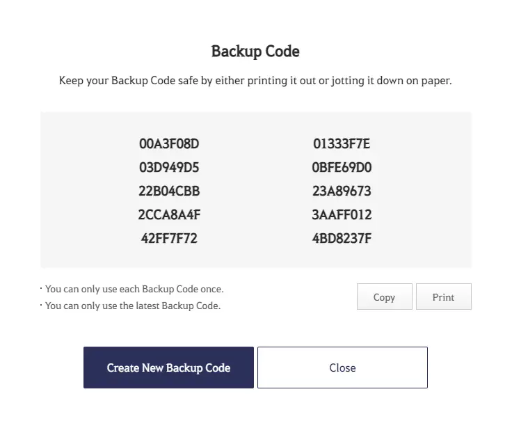 سادساً: رموز الأمان المؤقتة (Backup Codes)