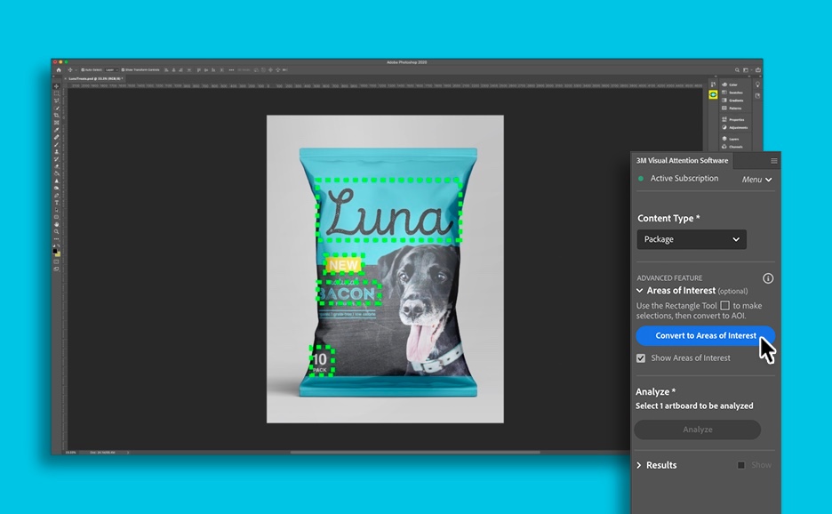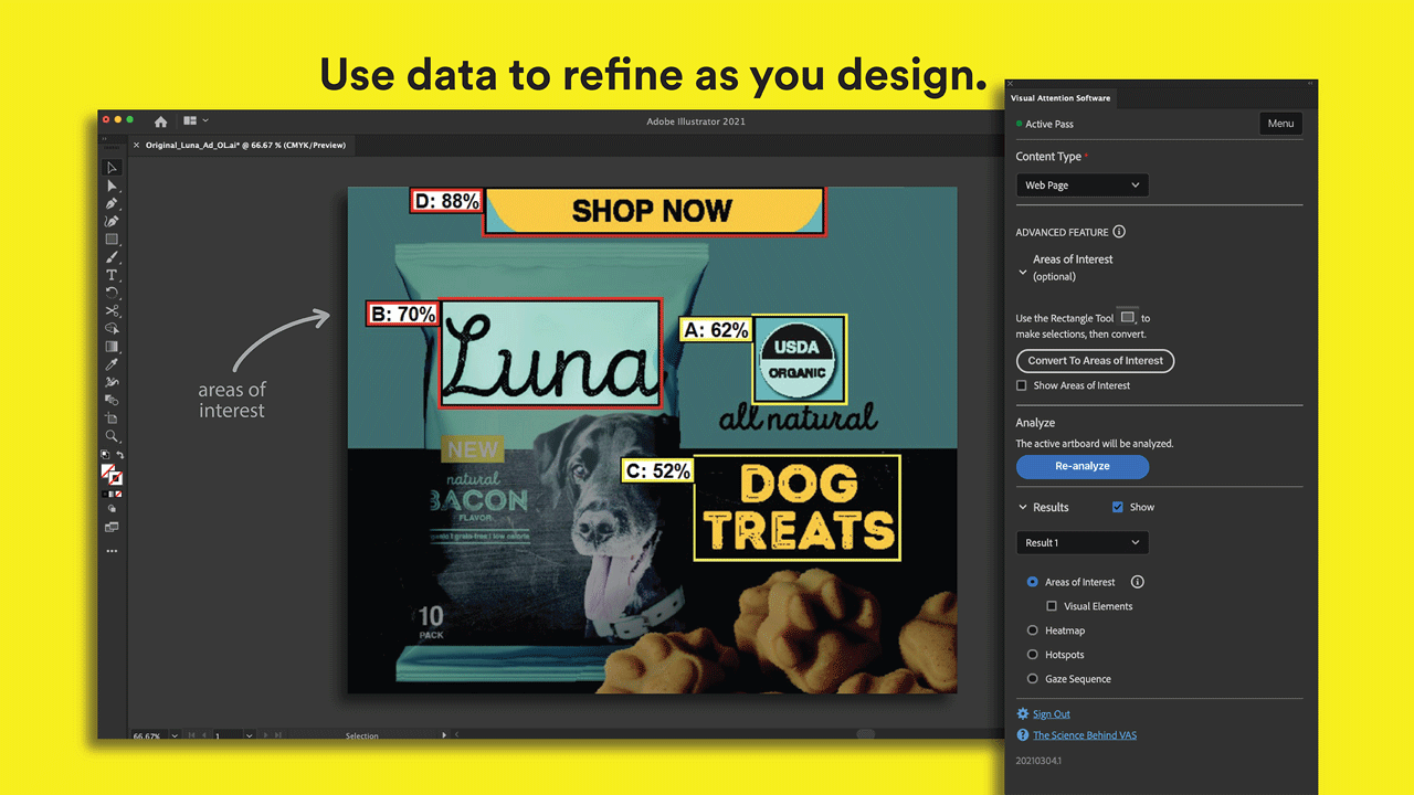 إضافة برمجية يمكن إستخدامها في تطبيقات Adobe تساعد على تحليل التركيز البصري للتصاميم. من خلال هذه الإضافة يمكنك إستخراج تقارير متقدمة لكل تصميم والوسيلة التي سيتم النشر من خلاله سواء كانت على منصات رقمية أو في البيئة الواقعية كإعلانات الطرق. كما يساعد هذه الإضافة على إستخراج خريطة حرارية لمستوى التركيز في التصميم أو خيار أخر لتتبع عملية قراءة محتوى التصميم ونسبة التركيز البصري.