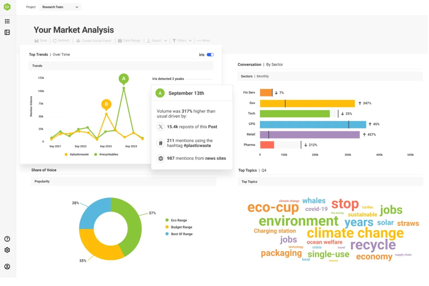 تُعد المنصة إحدى أبرز الأدوات المتخصصة لرصد وتحليل وسائل التواصل الاجتماعي. تقدم حلولاً متطورة لمتابعة العلامات التجارية وتحليل الاتجاهات والمحادثات الرقمية، بما يمكن الشركات من فهم جمهورها والتفاعل معه بشكل أكثر فاعلية. تعتمد المنصة على تقنيات الذكاء الاصطناعي وتحليل البيانات الضخمة لتوفير رؤى دقيقة تدعم اتخاذ قرارات استراتيجية وتعزز أداء الحملات التسويقية الرقمية.