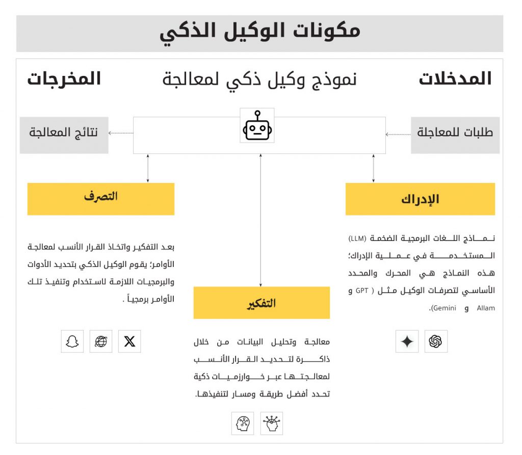 يتكون الوكيل الذكي من ثلاث مكونات رئيسية: