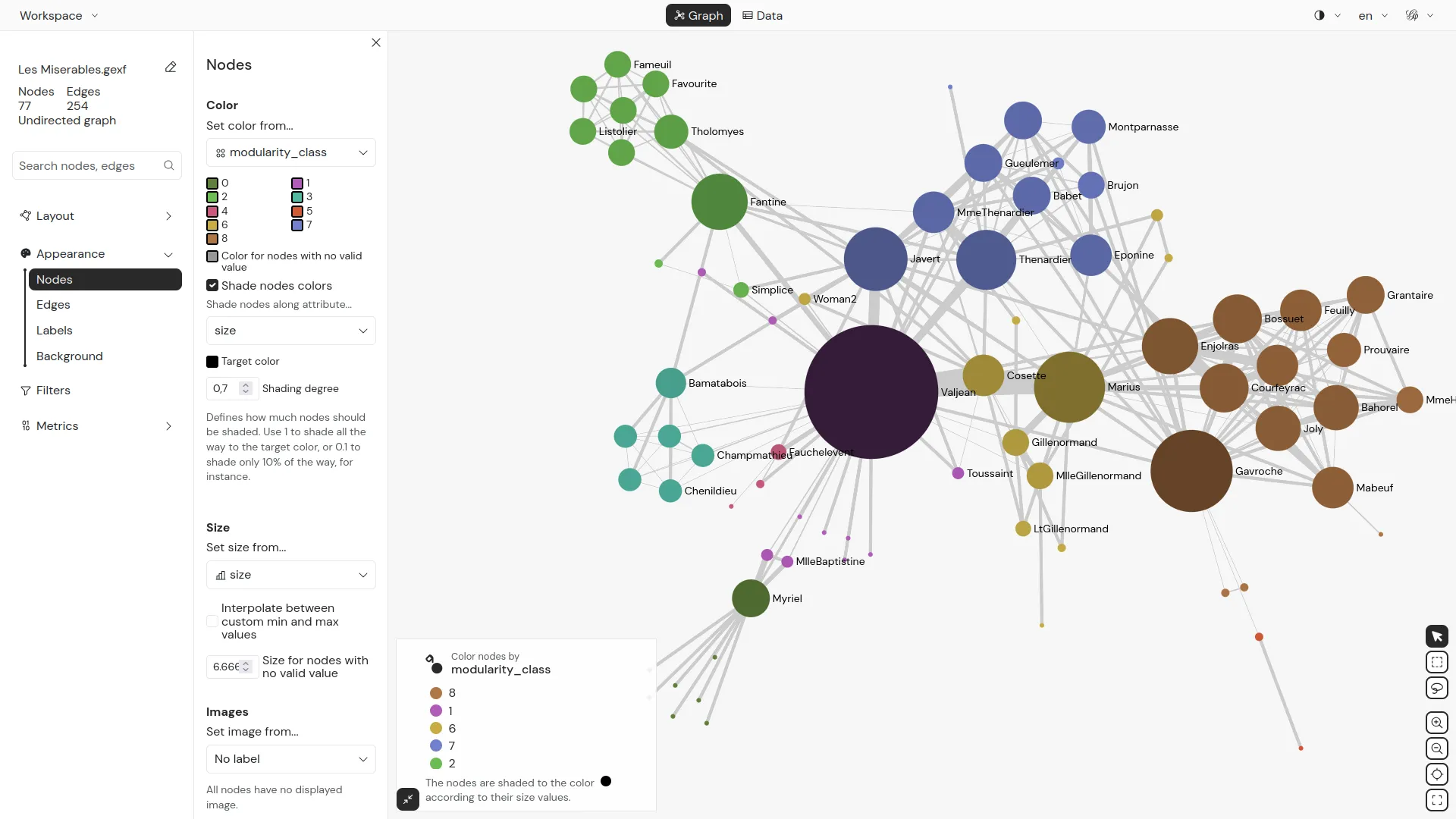 يعد برنامج مفتوحة المصدر لتحليل وتصوير الشبكات البيانية، ويُستخدم على نطاق واسع في مجالات علم البيانات والبحث العلمي وتحليل الشبكات الاجتماعية. يتمتع البرنامج بواجهة رسومية تفاعلية وسهلة الاستخدام تُمكن المستخدمين من دراسة العلاقات بين العناصر وتمثيلها بدقة، ما يسهم في تعزيز فهم الأنماط والتواصل ضمن مجموعات البيانات بصورة فعالة.